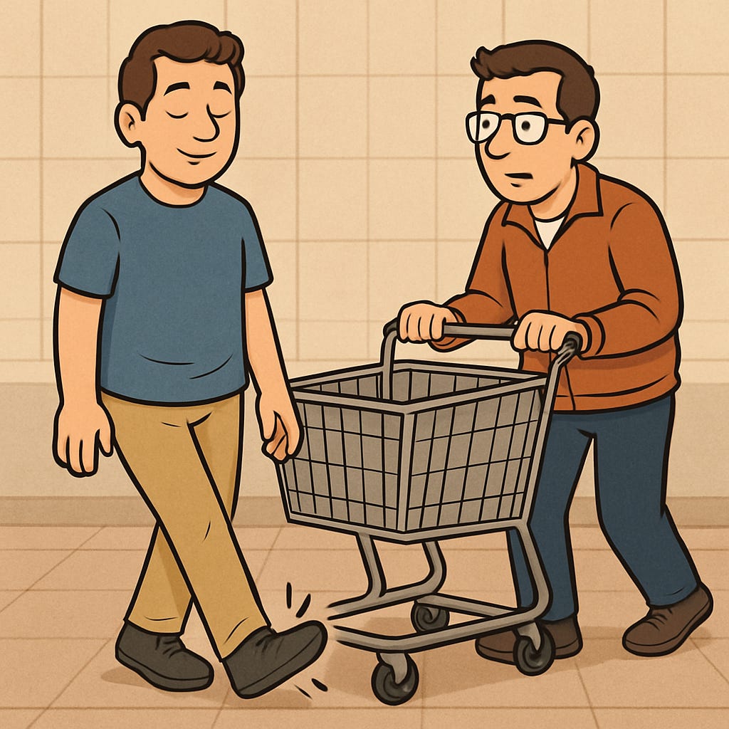 The shopping cart story in this essay is a perfect example, as Epictetus advised, of not allowing our judgments to run the show.